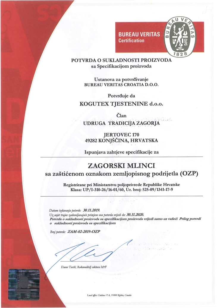 Poduzeće ''KOGUTEX'' d.o.o. osnovano je kao obiteljska tvrtka 1991. godine, kada je i otvorena prva trgovina mješovitom robom u Jertovcu, a registrirano je kao proizvodno-trgovačko i uslužno poduzeće. 2016. godine osnovana je tvrtka - kćer KOGUTEX Tjestenine doo koja se odvaja od trgovačke djelatnosti tvrtke KOGUTEX doo, te preuzima i nastavlja sa radom proizvodnje Zagorskih mlinaca a u budućnosti će se spomenuta tvrtka početi baviti i proizvodnjom sušene tjestenine, te prehrambenim proizvodima. Tvrtka KOGUTEX Tjestenine doo je certificirani proizvođač zagorskih mlinaca od stane certifikacijskog tijela Bureau Veritas Croatia d.o.o. Vodeći smo proizvođać ovog specifično ručno rađenog proizvoda sa kapacitetom proizvodnje od gotovo preko 220 tona zagorskih mlinaca tokom kalendarske godine. Uz tržište RH, izvozimo i na tržišta i drugih članica EU: