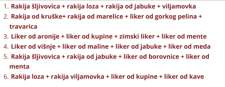Rakija šljivovica + rakija od jabuke + liker od borovnice + liker od