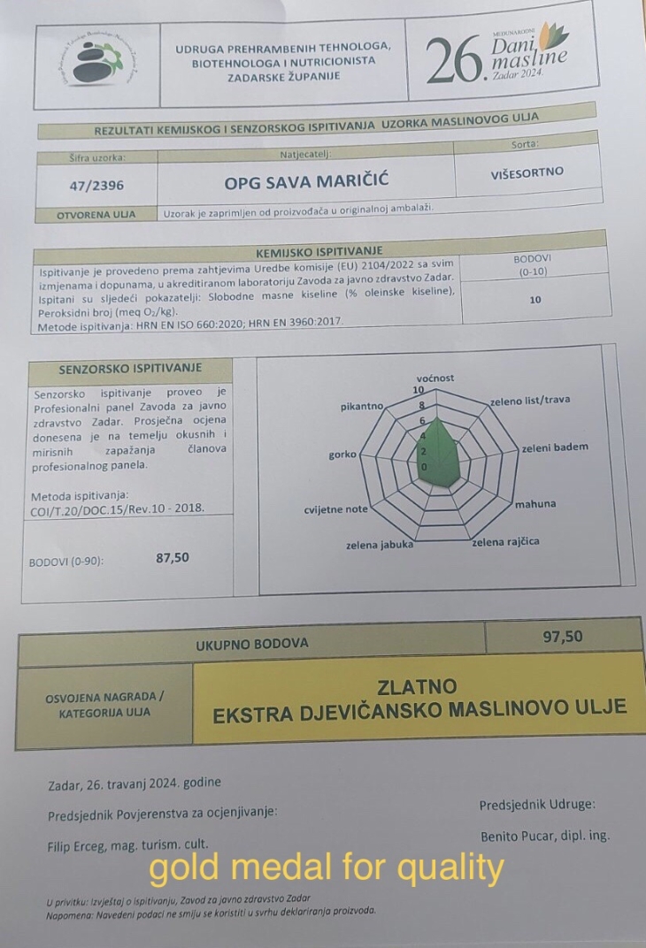 Poznati smo po proizvodnji visokokvalitetnog ekstra djevičanskog maslinovog ulja, koje se izdvaja po svom bogatom okusu i aromatičnim notama. Naše se ulje dobiva pažljivim procesom hladnog prešanja maslina, koji omogućuje očuvanje svih nutritivnih svojstava i prirodnih antioksidansa. Vodimo računa o svakom koraku proizvodnje, od uzgoja maslina do pakiranja, kako bismo svojim potrošačima osigurali autentičan proizvod vrhunske kvalitete. Ulje se idealno uklapa u razne kulinarske delicije, pridonoseći zdravlju i uživanju u hrani.