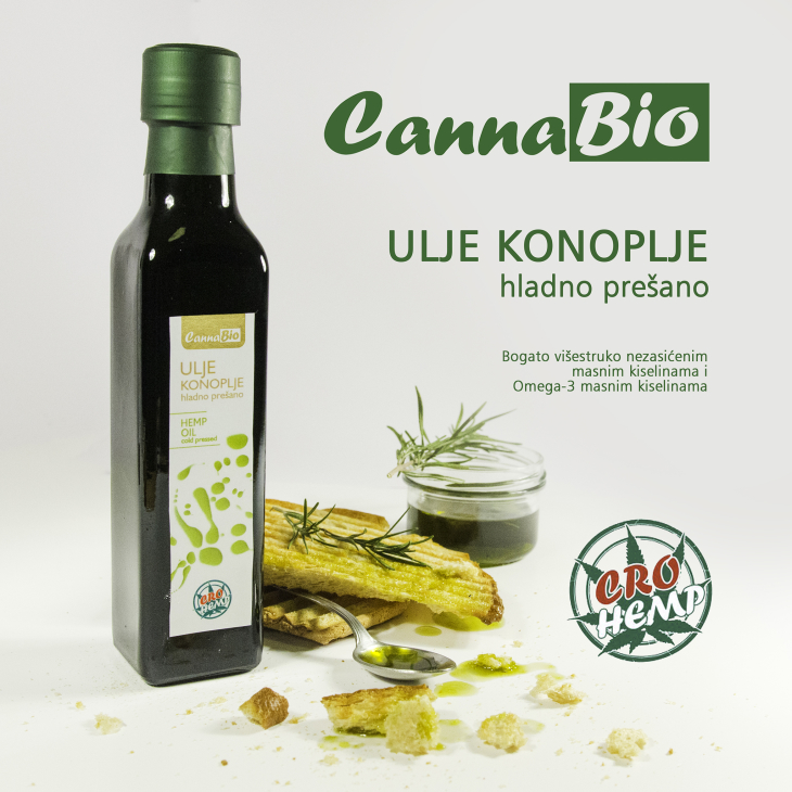 jestivo ulje proizvedeno od sjemenki industrijske konoplje Cannabis sativa L uzgojene u Hrvatskoj, hladno prešano i prirodno filtrirano taloženjem;