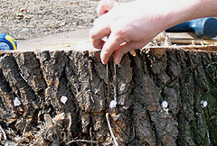 Nacjepljivanje je vrlo jednostavno pa se može vrlo brzo nacjepiti velik broj panjeva koristeći priručni alat.